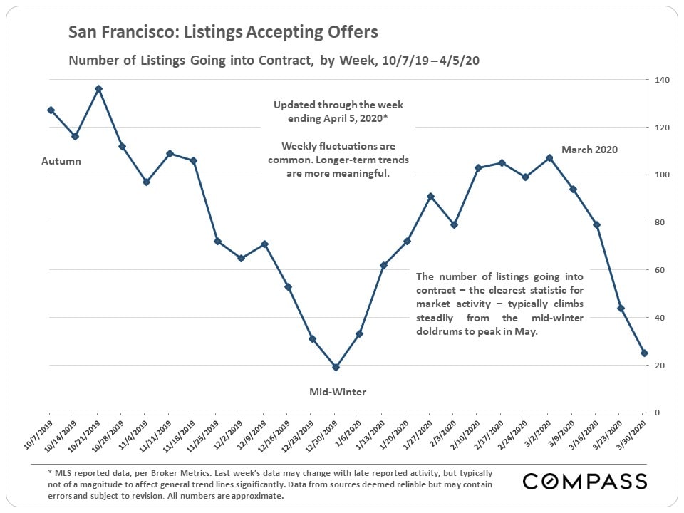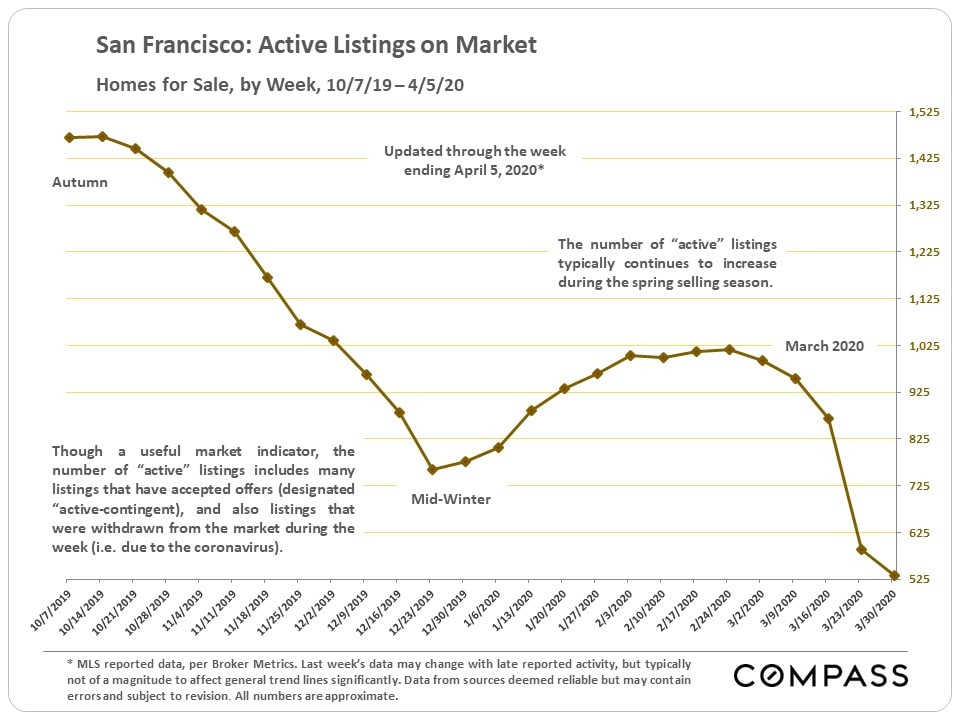 ​​​​​​​This report will look at the effect of the crisis on supply and demand by reviewing week by week statistics, at sales price trends reflecting the market before the crisis, and longer-term trend data to give context to how the market typically performs at this time of year. Spring is usually the most active selling season and often sees the highest median sales prices of the calendar year, due to both the level of buyer demand and the seasonal surge in the luxury home market. (A higher percentage of luxury home sales pulls up the overall median sales price).