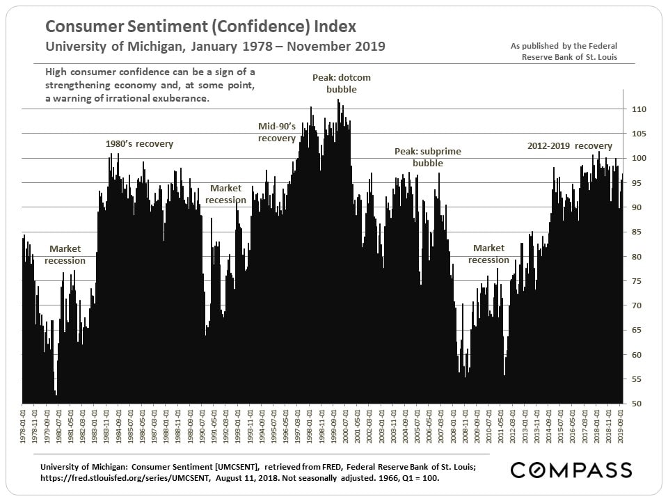 The 3 charts below show how real estate market cycles generally move in sync with other economic indicators such as - using 3 examples - financial markets, employment and consumer confidence. The S and P 500 chart goes through the end of 2019 and does not reflect the crazed volatility created by the coronavirus situation.