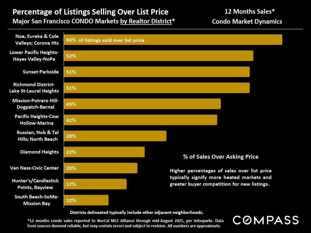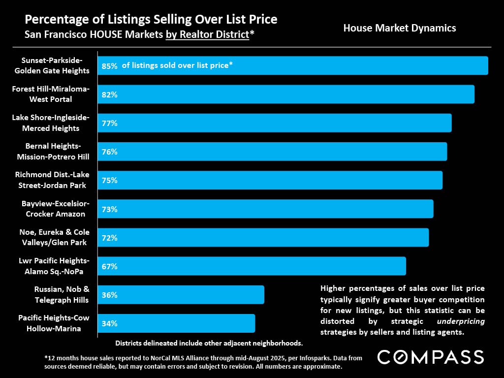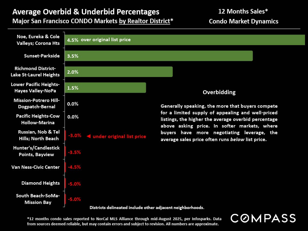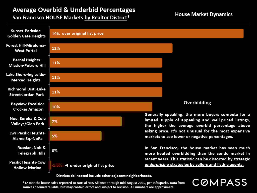- Overbidding: 47% of sales closed over the list price, with houses at 70% and condos at 25%.